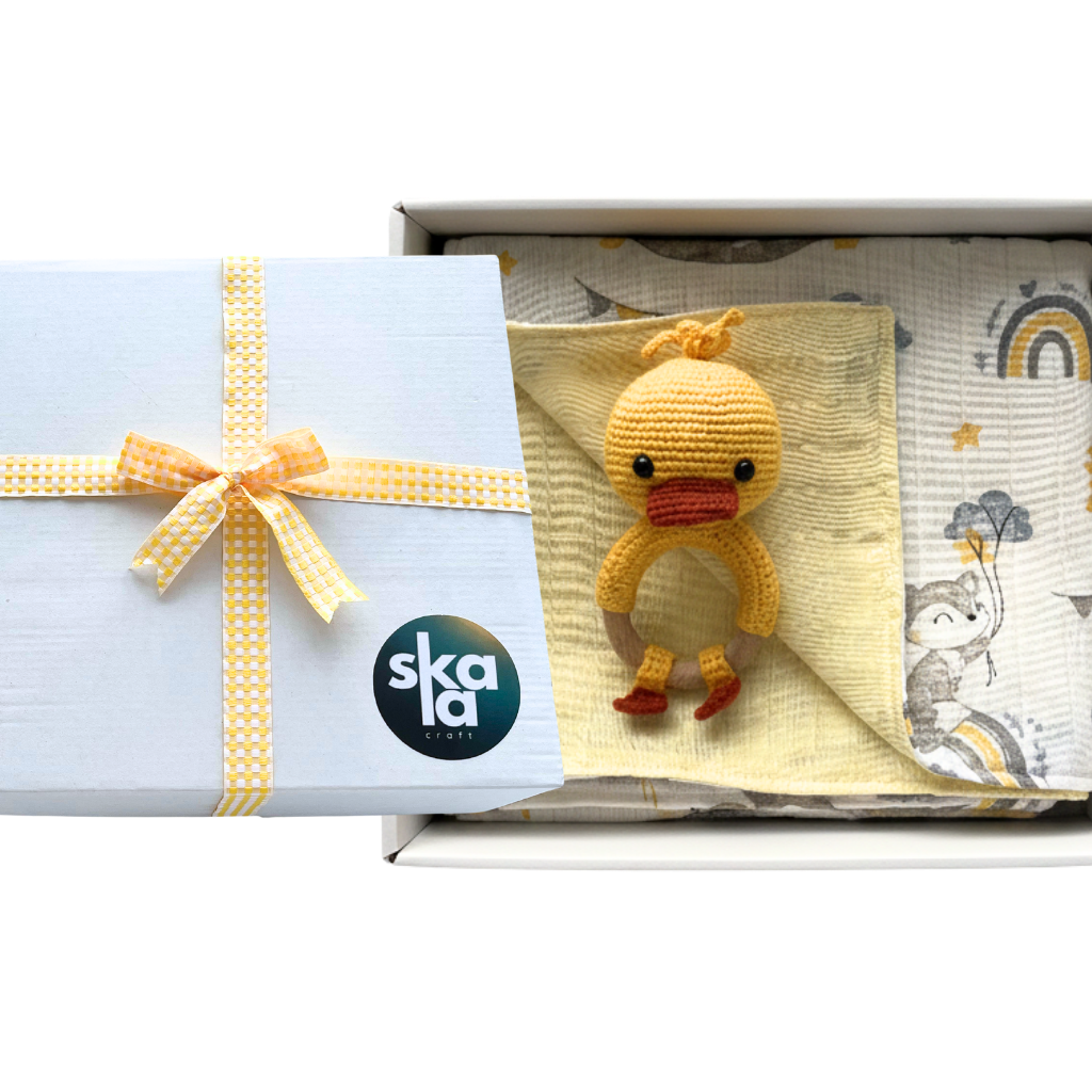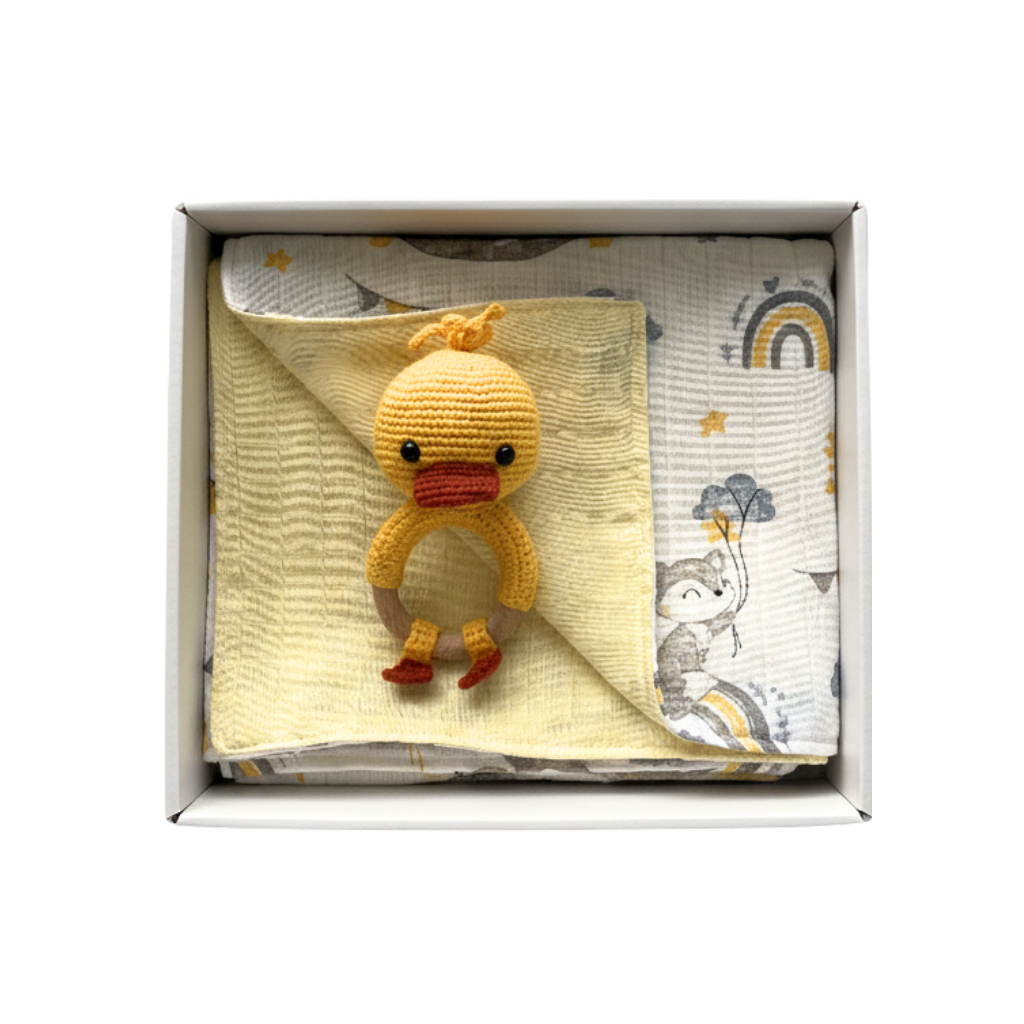 Minik misafirinizi karşılamanın en tatlı yolu! İçindeki özenle seçilmiş parçalarla bu kutu, yeni doğan mutluluğunu paylaşmak için zarif ve anlamlı bir hediye. Beyaz ve sade süslemeli kutu içinde, sizin özel notunuzla…